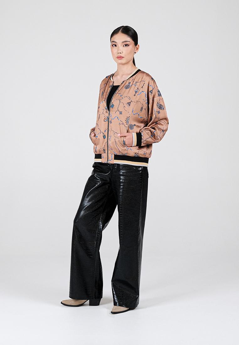 • Стильный бомбер в лёгком оверсайз-крое соединяет эстетику традиции и практичность городского стиля. Двухсторонний дизайн открывает сразу два варианта образа: с одной стороны — премиальная итальянская вискоза твил, с другой — итальянский полиэстер твил. Прорезные карманы с обеих сторон добавляют функциональности, а эластичный трикотажный воротник, манжеты и пояс обеспечивают комфортную посадку и современный силуэт.