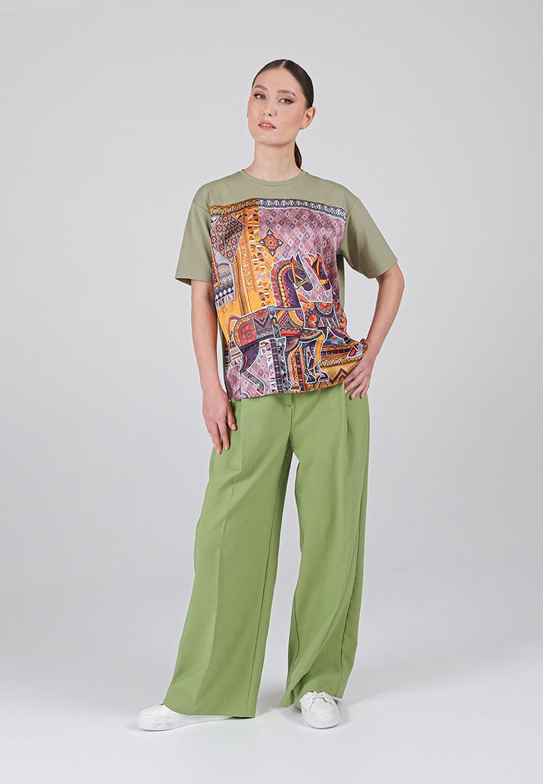 • Свободный крой обеспечивает удобство и универсальность: футболка гармонично смотрится и с джинсами, и с более элегантными элементами гардероба.